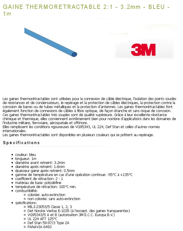 GAINE THERMO 3.2mm BLEU tube de 1 metre