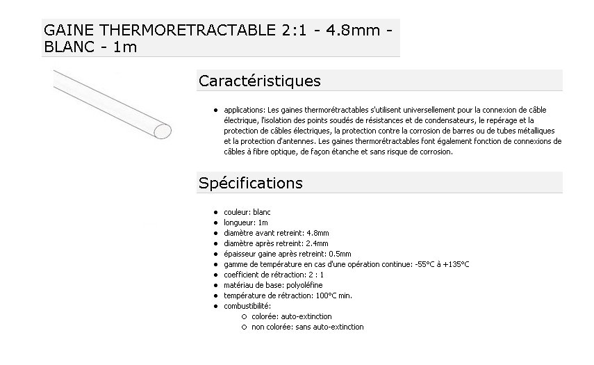 GAINE THERMO 4.8 mm BLANC tube de 1 metre