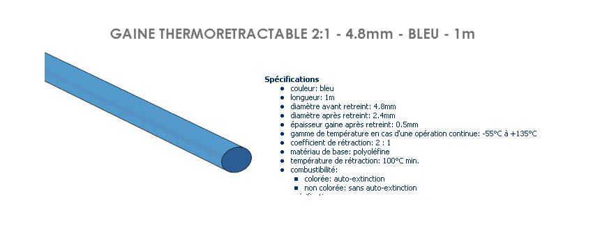 GAINE THERMO 4.8 mm BLEU tube de 1 metre