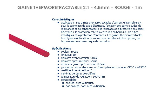 GAINE THERMO 4.8 mm ROUGE tube de 1 metre