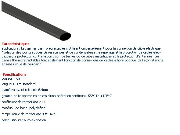 GAINE THERMO 6.4 mm NOIR tube de 1 metre
