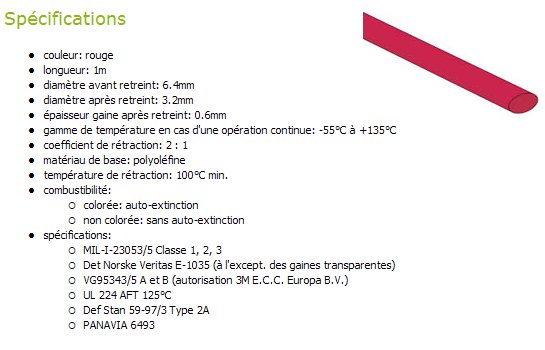 GAINE THERMO 6.4 mm ROUGE tube de 1 metre