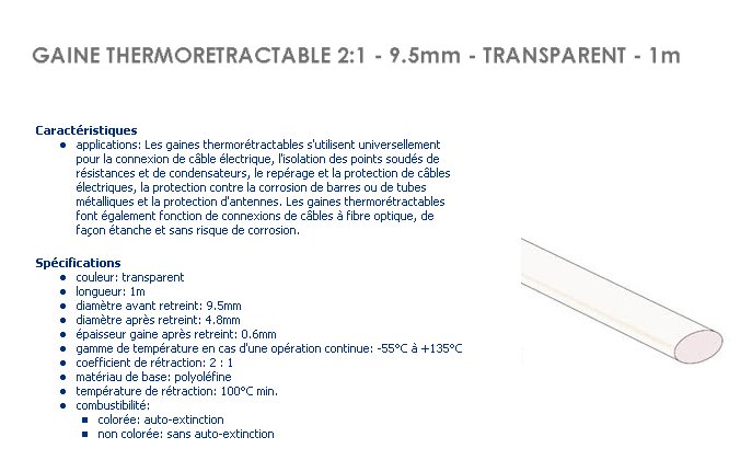 GAINE THERMO 9.5 mm TRANSPARENT tube de 1 metre