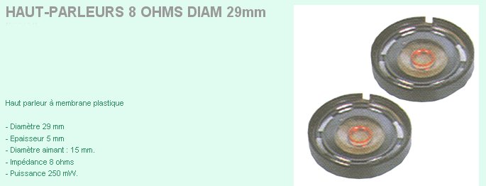 Haut parleur - 250 mWatts - 8 Ohms - diamètre 29 mm épaisseur 5 mm