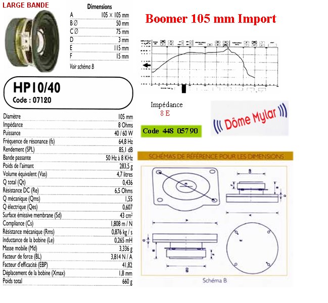 Haut parleur - 8 Ohms - 40/60 Watts - HP10/40