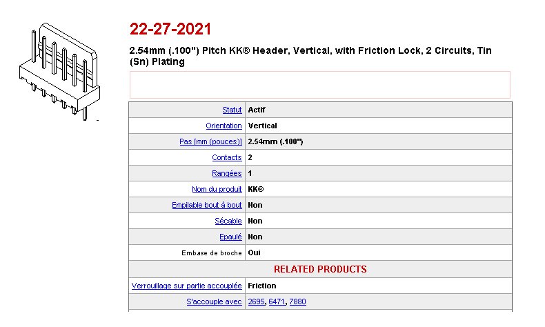 HE14 EMBASE MALE 2 points KK MOLEX pas 2.54mm 22272021