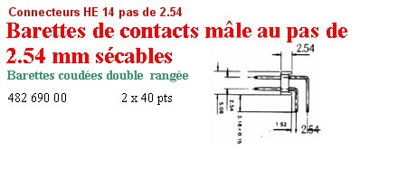 HE14 EMBASE MALE 2 x 40 points COUDE pas 2.54mm PRRD80