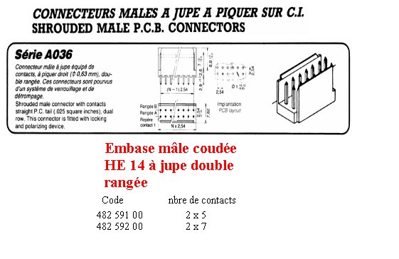 HE14 EMBASE MALE 2 x 7 points AVEC JUPE pas 2.54mm A036 014 YB 501