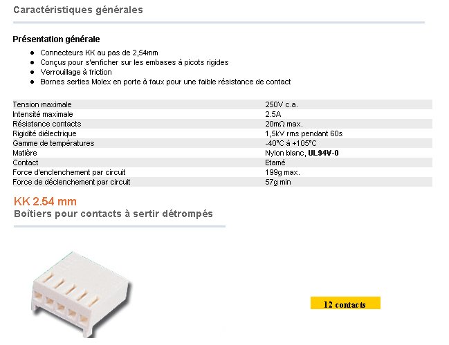 HE14 FEMELLE 12 points KK MOLEX pas 2.54mm