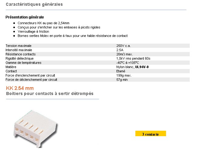 HE14 FEMELLE 3 points KK MOLEX pas 2.54mm