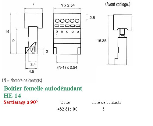 HE14 FEMELLE 5 points AUTO DENUDANT pas 2.54mm 478 2710 105 440