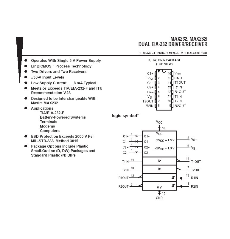ICL232CPE =MAX232 DUAL EIA-232 DRIVER/RECEIVER