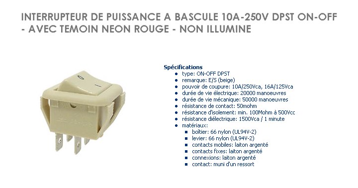 INTERRUPTEUR 2 POLES ON-OFF 10A 250V