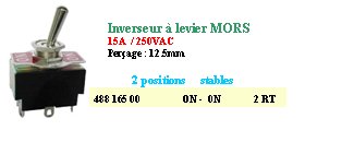 INVERSEUR UNIPOLAIRE A LEVIER 3 POSITIONS ON/OFF/ON 10A 250V 639H2