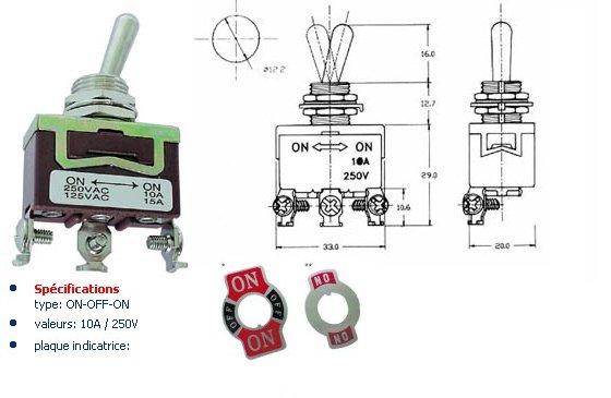 INVERSEUR UNIPOLAIRE A LEVIER 3 POSITIONS (ON)/OFF/(ON) 10A 250V