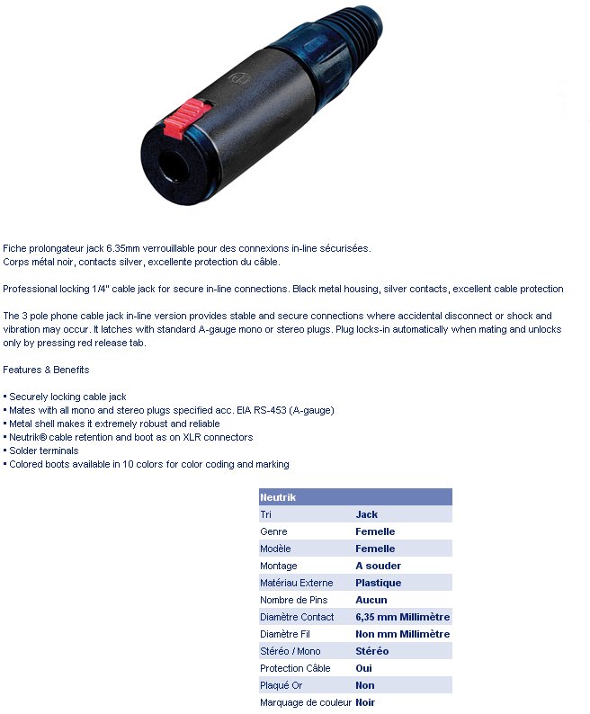 JACK 6.35mm FEMELLE stereo NEUTRIK