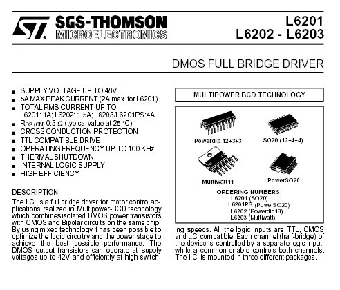 L6203 CI DOUBLE CIRCUIT DE COMMANDE MULTIWATT