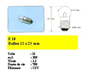 LAMPE 12V 1.2W 100mA BALLON CULOT E10 E2313