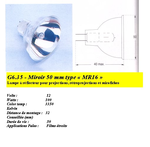 LAMPE 12V 100W HALOGENE EFP CULOT G6.35 50x40mm H164627