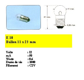 LAMPE 12V 50 mA BALLON CULOT E10 E2312