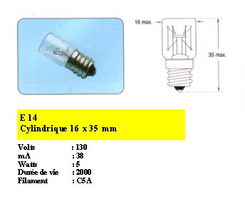 LAMPE 130V 5W CYLINDRIQUE CULOT E14 E3534