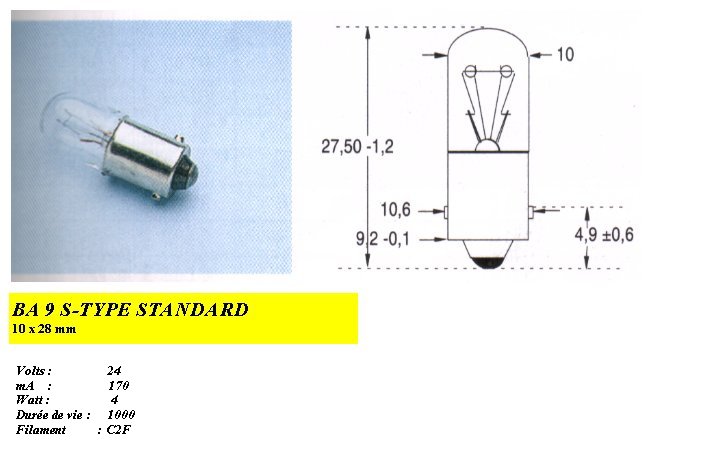 LAMPE 24V 125mA BA9S 10x28 mm B3041