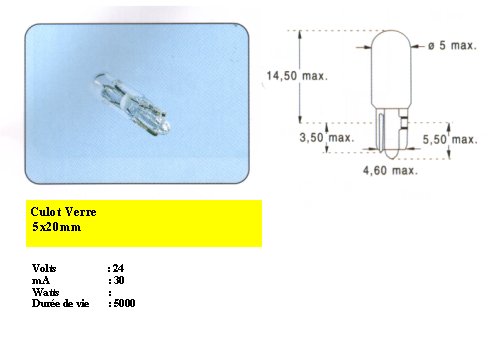 LAMPE 24V 30 mA CULOT VERRE W2342 @