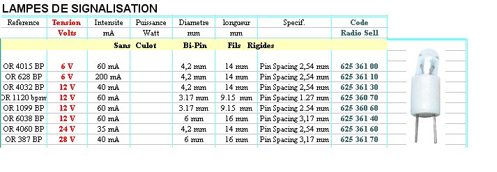LAMPE 24V 35 mA BI-PIN OR4060BP 4.2x14 mm pas 2.54 mm