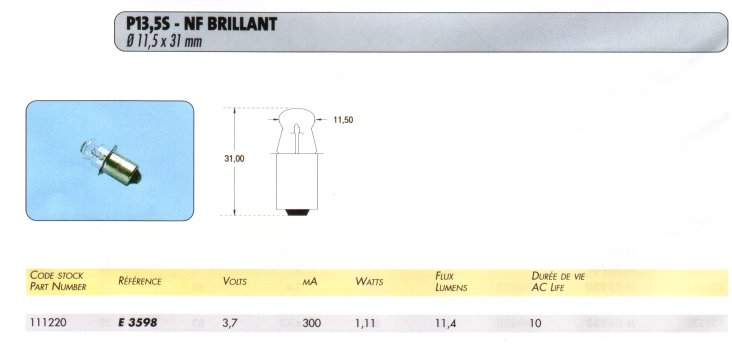 LAMPE 3.7V 0.3A PREFOCUS P13.5S E3598