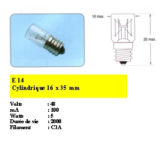 LAMPE 48V 5W CYLINDRIQUE CULOT E14 E3528