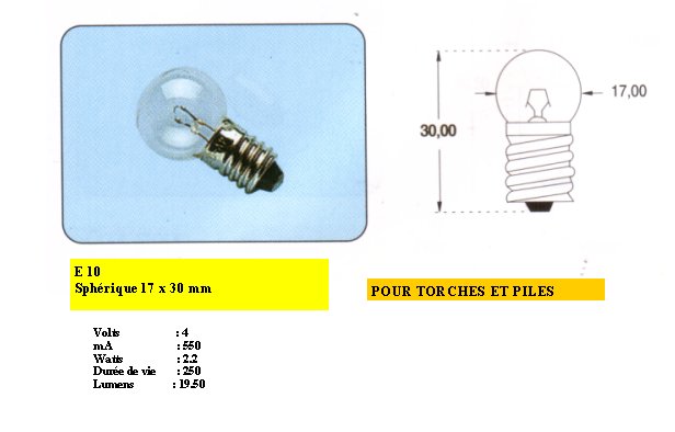LAMPE 4V 2.2W SPHERE E10 E364 KRYPTON POUR TORCHE