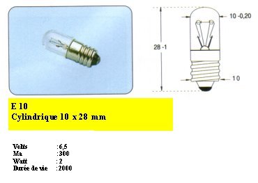 LAMPE 6.5V 300 mA CYLINDRIQUE CULOT E10 10x28mm E3068