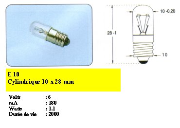 LAMPE 6V 180 mA CYLINDRIQUE CULOT E10 E3069