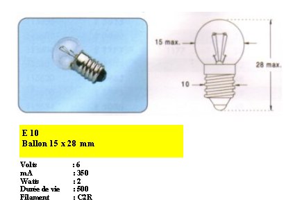 LAMPE 6V 2W 350 mA BALLON CULOT E10 E2808