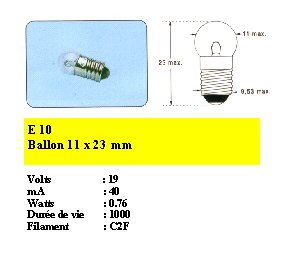 Lampe ballon 19 Volts 40 mAmpères Culot E10 E2319