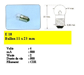 Lampe ballon 4 Volts 2 Watts 500 mAmpères Culot E10 E2305