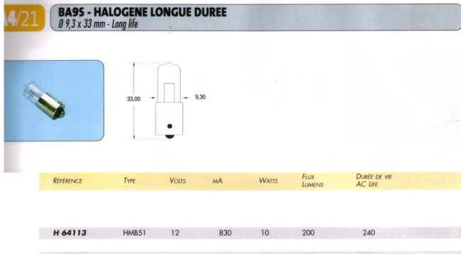 Lampe halogène 12 Volts 10 Watts - BA9S H64113
