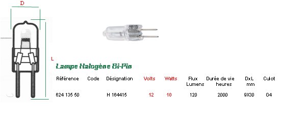 Lampe halogène 12 Volts 10 Watts Culot G4 - H164415