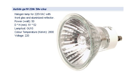 Lampe halogène 230 Volts 50 Watts Culot GU10