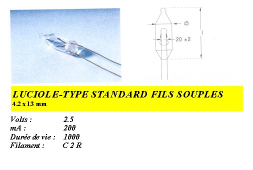 Lampe luciole 2.5 Volts 200 mAmpères 4.2 x 13 mm OR5259