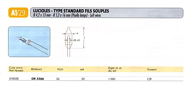 > > > > Lampe luciole 24 Volts 5O mAmpère 5,2 x 16 mm