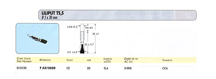 Lampe téléphone 12 Volts 20 mAmpère - T5312020 Culot T5 55 x 30 mm