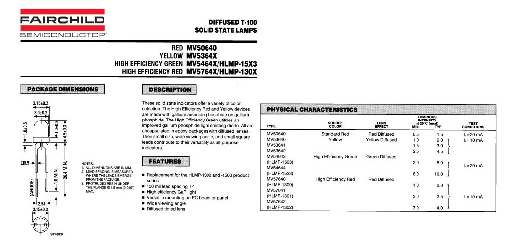 LED 3 mm MV54643 verte