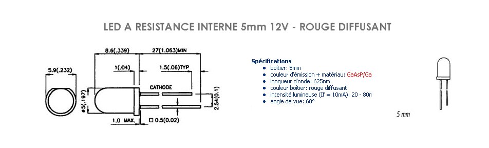 Description du produit : Led standard Kingbright avec résistance intégrée