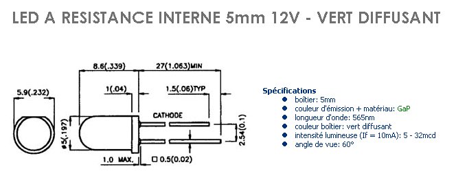 LED 5 mm 12V verte