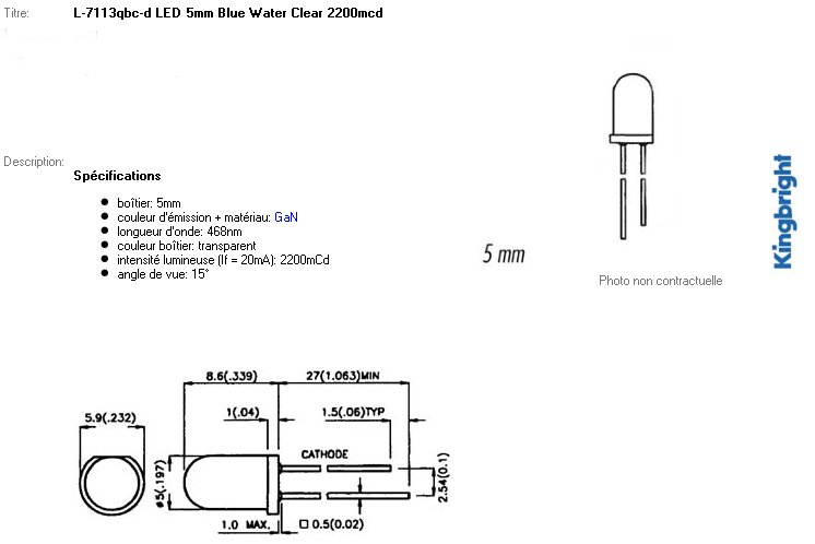 > > > > LED 5 mm D5 4000 mcd 10 mA 3,8 V - bleue transparente