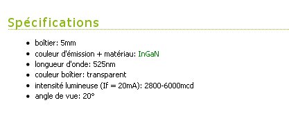 LED 5 mm VERTE tres haute luminosite 4500 mcd