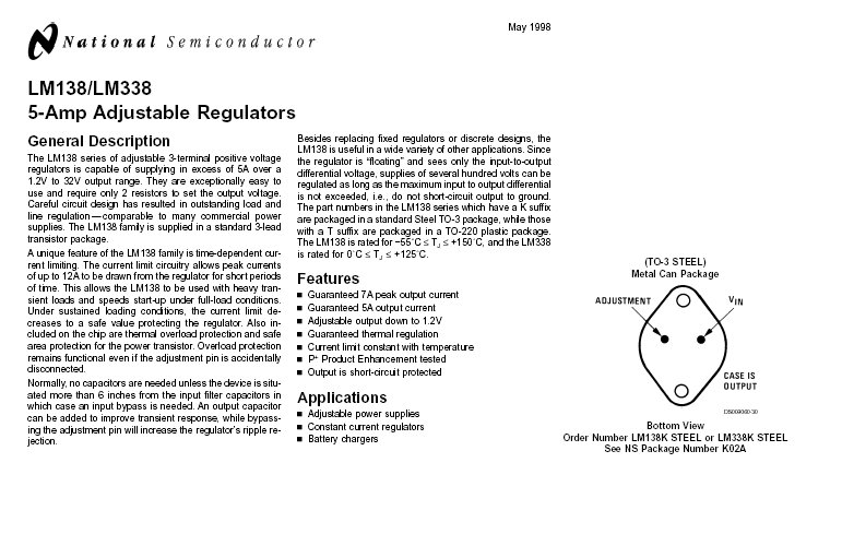 LM338K REGULATEUR DE TENSION +1.2V/+32V 5A TO3