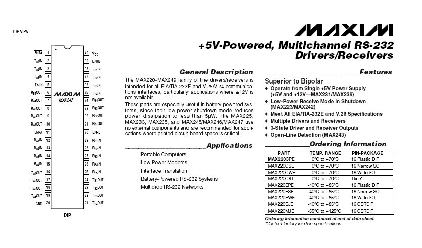 > > > > MAX233CPP +5V-Powered, Multichannel RS-232 Drivers/Receivers DIP40