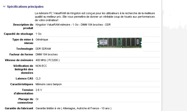 Mémoire Corsair DDR1 - 1 Go / PC3200